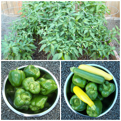 We also had a surprise pepper plant this year, I bought a six pack of jalapenos and another pepper variety must have found its way into the mix. I am not quite sure what the variety is, I'm thinking maybe Anaheim chili peppers. I am quite glad for the mistake, we have been enjoying them with our eggs at breakfast, sauteed in a little butter, they have a little bite, but overall are pretty mild. I hope to find the same variety next year, any pepper growers out there recognize what this variety might be?