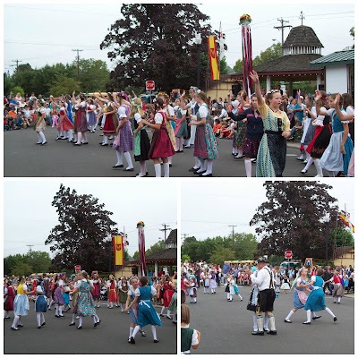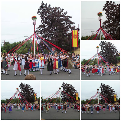 I am typically on the other side of the festival area most years around noon, watching the dachshund races, but this year we were there in time for the May Pole Dance which occurs every day of the festival at noon, what a fun dance to watch as the ribbon is braided around the pole.