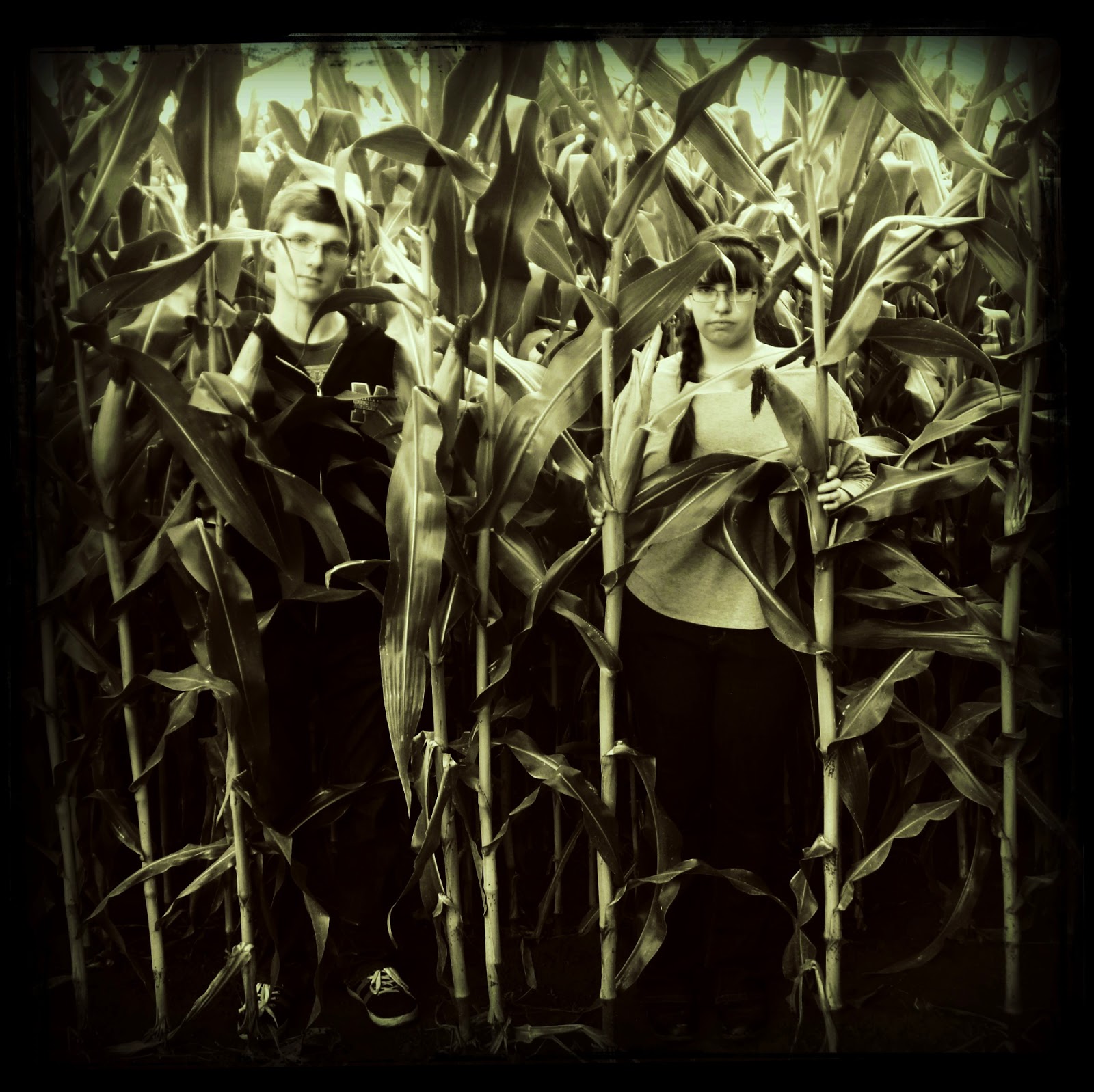Rows of corn really can be spooky, I would never be able to go into one of those haunted corn mazes, no way! However, we did have fun taking pictures of Sarah and Joe looking like menacing "children of the corn". I knew I would have fun playing with filters and making some spooky Halloween pictures of the kids. :)