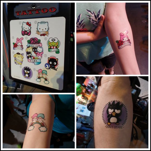 There was a temporary tattoo station and we all got a tattoo, Sarah got My Melody, Gary got Badtz Maru, and I got my favorite Sanrio characters- The Little Twin Stars. They were really nice quality and colors for temporary tattoos and lasted for three or four days. They had a bunch of cute designs to choose from. :)