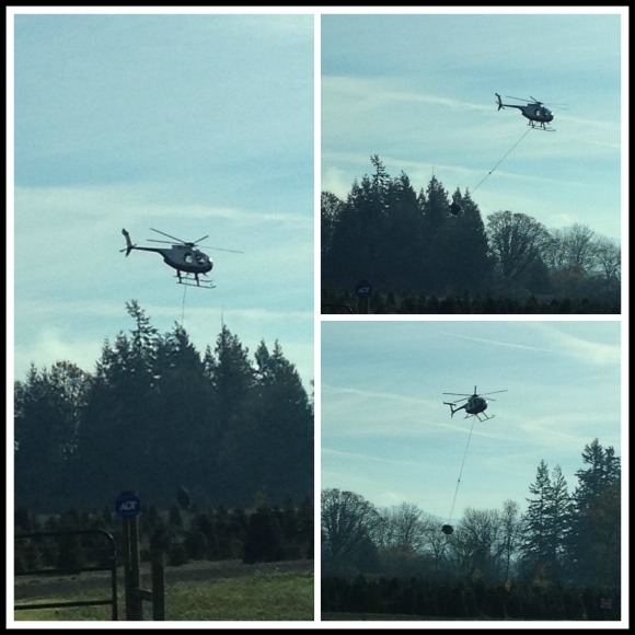 Here is a helicopter hard at work that we spotted on the way to church in mid November.