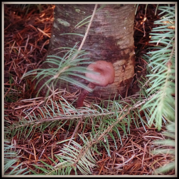 All the trees were lovely, just about any tree would have been great, finally we settled on one, and when we lifted the branches to start cutting it down we spotted a toad stool next to the trunk, which I thought was fun and perhaps a gift from a Christmas elf. ;)
