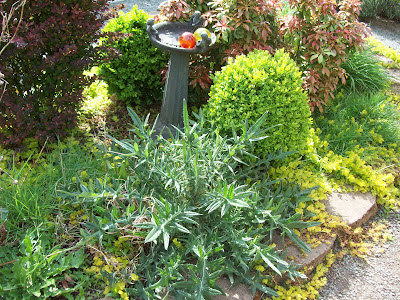 Anyway, I was out surveying the garden, deciding what needed to be done, when I came accross a huge weed. I am pretty sure it is in the thistle family. Such a huge weed for a tiny garden. I used to get these out in my large pasture, and every year I used to let one grow. I decided that I would leave this giant and watch it grow as well- I am hoping it is a pretty pink thistle- I will post it's progress in my garden updates.