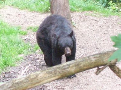 One of our first stops was the black bear exhibit- there were four bears, and they were all pretty young, here is one of the bigger bears below. One of the cubs was frolicking in a small pool of water, he was so playful. We watched these bears for quite some time, we decided they act quite a bit like our two black labs.