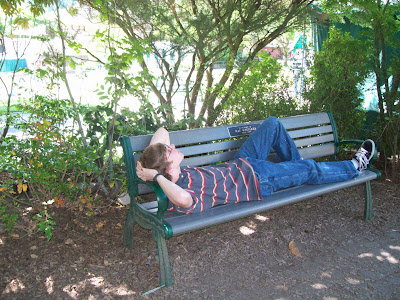 Here is Joseph resting on a bench beneath a tree in the sculpture gardens. Joseph loves any bench under a tree.