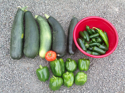 We brought in a bunch of large zucchini that we will turn into breads, cakes and fritters this week, and our pepper plants are all doing well. We will have a big batch of jalapeno poppers this week as well as some stuffed green peppers and green pepper and egg sandwiches (My hubbies childhood favorite). We also harvested our first ripe full sized tomato- if this sunshine keeps up we should have quite a few more over the next couple of weeks.