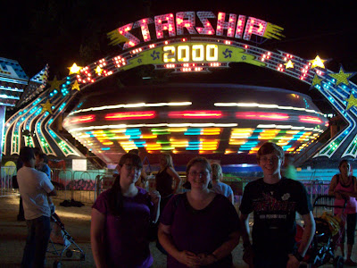 After the talent show we decided to check out some of the rides and carnival games, we don't normally go on any of the rides, as they are pretty spendy, but we decided to all go on this one- when I was a child it was called the Gravitron, and has always been my favorite ride. The whole family agreed that it was a very fun ride, and is a great way to experience centrifugal force.