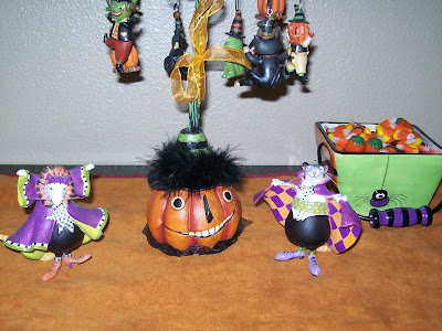 I always have out candy dishes with candy corn autumn mix- this candy dish sits next to my little Halloween tree and Halloween Count Ratula's.