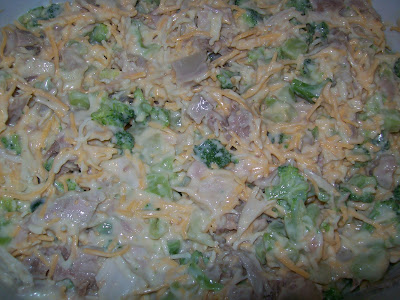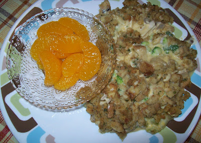 I don't very often try recipes from the back of boxes, I have many homemade casserole recipes rolling around in my head, and I don't love all of the added salt in boxed mixes, but the recipe for Easy Turkey Bake on the back of a spare Stove Top Stuffing box I had in the pantry looked yummy, and an easy prep for a Sunday evening, so I decided to give it a try. Here is a link to the recipe at Kraft's recipe website- Easy Turkey Bake . This recipe was super easy to prepare, and only called for a few basic ingredients, like frozen broccoli, cheese, milk, turkey, and cream of chicken soup, along with stuffing for the topping.