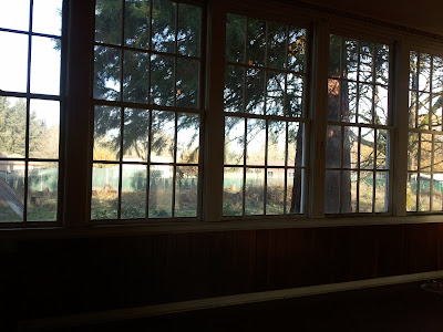 Here are some pictures, I failed to remember my camera, but the phone cameras did a pretty good job. This is the front of the old schoolhouse, I love the nice tall entrance, and the old mossy cement stairs were great, not to mention the huge old Rhody bush in the front, which must look amazing in the spring.