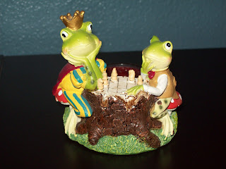 My frog prince will join my growing cast of fairy tale characters on the book case.