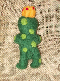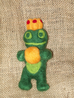 I had a hard time deciding how I would make the frog prince this week, I couldn't decide between a paper craft, or a sewn doll or needle felt. I decided to try needle felt, and I thought I would try needle felting around a cotton pipe cleaner armature, so I could move his arms and legs.