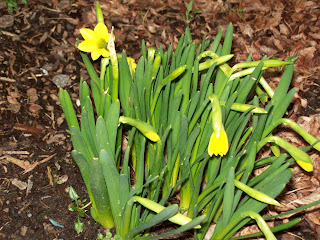 Spring is definitely around the corner, two bulbs have just blossomed in my front yard, always nice to see the color returning to my garden. A little dwarf iris and a clump of Narcissus.
