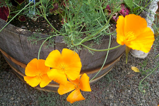 The California Poppies are looking beautiful in the corner, I have always loved these easy to grow flowers, I love that they reseed so nicely. We have them growing all over town, and they look so happy.