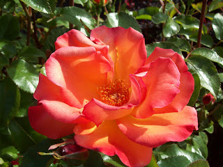 My rose bush is also in full bloom right now, lots of gorgeous orange/pinkish red blossoms.
