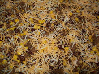 Mix 1 pound of Taco Seasoned cooked ground beef, with one can drained sweet corn, and one can drained and rinsed black beans.