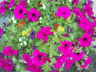 Out in the garden the flowers are looking very nice, Gary got this beautiful hanging basket as a thank you gift for volunteering at the high school this year. I love these pink petunias!