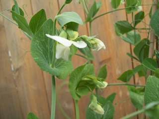 I grew them in large buckets with bamboo tripods, and at first they did pretty well. I probably should have thinned them out a bit more (thinning is something I really need to work on), but otherwise they were growing well and pea pods started to appear. The I noticed that they were being attacked by a pest, and not doing very well, after some research I realized it was the pea weevil. The only way to get these out of your garden is to not let their life cycle come full circle, so I decided to harvest the few good peas that were left, and discard the rest. Next year I will plant them in a different location, and try again.
