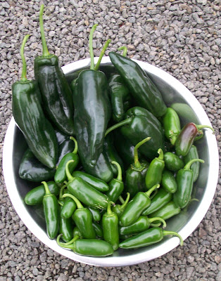 The stars of the garden this week are definitely the pepper plants. We had quite a harvest of jalapenos and poblano peppers today, and I am looking forward to jalapeno poppers tonight. The poblanos will go well with sausage and onions, and I am hoping to make a jalapeno cornbread next week. Next week we should have another large harvest of jalapenos as well as the bell peppers that are starting to come along.