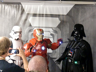Here is Iron Man hanging out with a storm trooper and Darth Vader.
