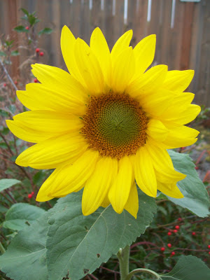 I have been so busy inside the last couple of weeks, that my garden has been a bit neglected. I was pleasantly surprised last week though, when I went for a walk through my garden to assess the weeding and fall clean up that I still needed to do, and found that some beautiful sunflower plants had sprung up under the bird feeders. The buds hadn't opened yet, but they looked like they would any day. The last few days beautiful sunflowers have blossomed!