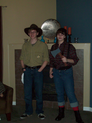 Sarah and Joe had a fun Halloween, we came up with some fun costumes this year, Joseph was an Indiana Jones type explorer with a rope and compass and hat. Sarah was a Lumber "Jane" with flannel shirt, suspenders, a black stocking cap, and a painted cardboard ax. My camera was being persnickety about taking low light indoor pictures, I will add a better picture from my hubby's camera when he gets home today. I love costumes made from items that can be found around the house.