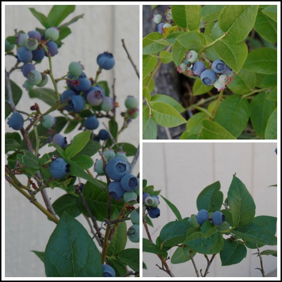 The beginning of blueberry season has arrived. I have both early and late varieties of blueberry, and the early variety are ready for picking. The kids have been nibbling on fresh berries and I will hopefully have enough for a small blueberry crisp or some muffins and pancakes this week. :)