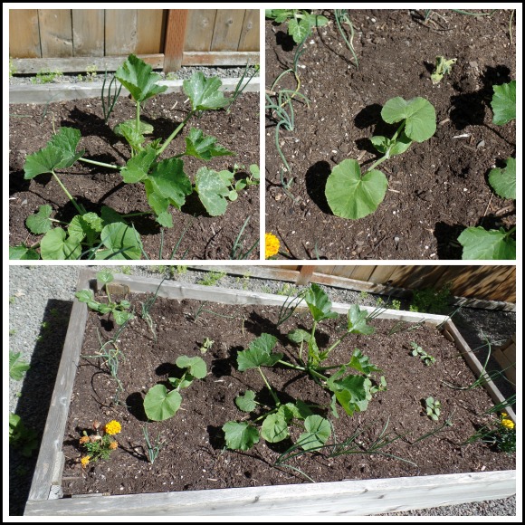 My squash and onion patch is doing okay also, the pumpkins are a bit slow to start, and the best squash plant of all is the mystery squash which was a volunteer, I wonder what it will be? The Walla Walla Onions are doing well also.